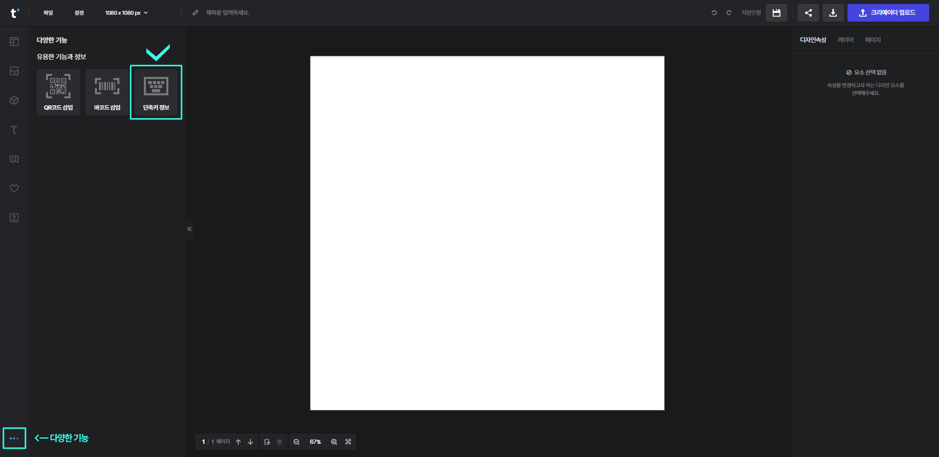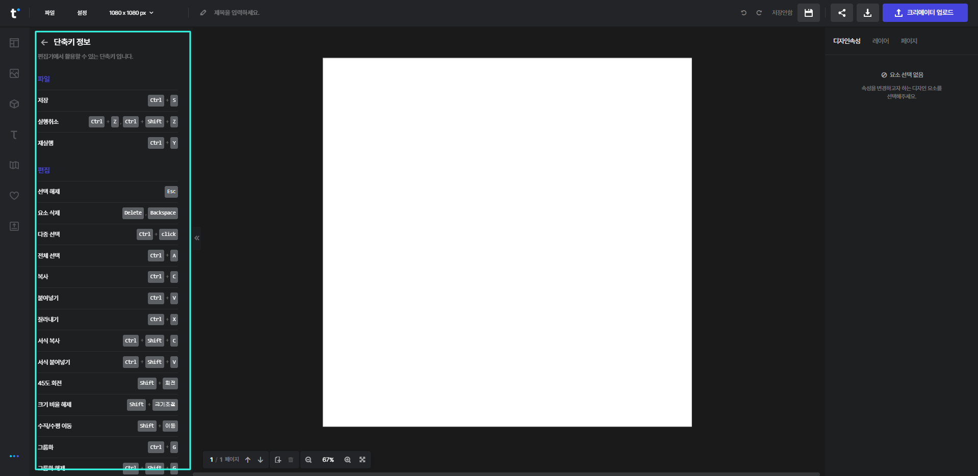 단축키 정보는 편집기 좌측 하단의 [다양한 기능] - [단축키 정보]에서 바로 확인하실 수 있어요!