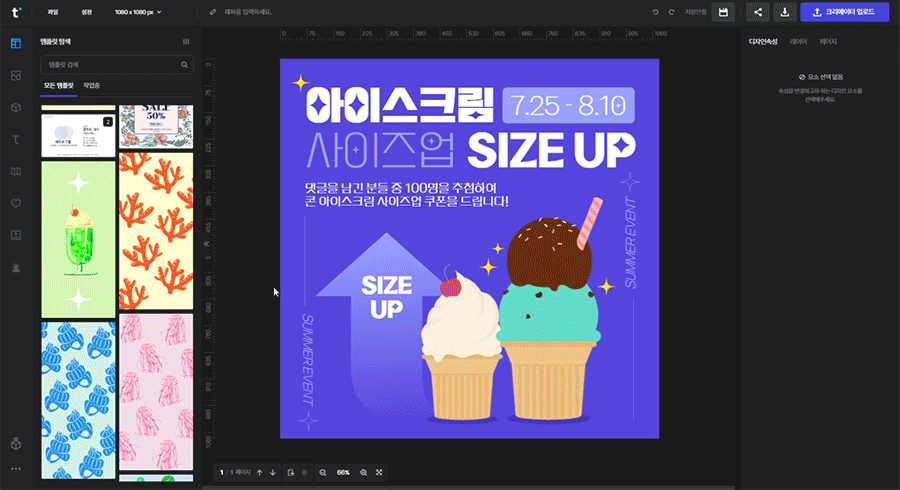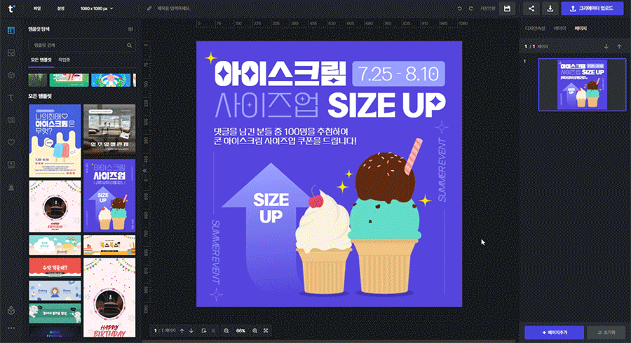 우측 상단에 [템플릿 사이즈로 변경하기] 알림창이 뜹니다.