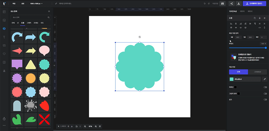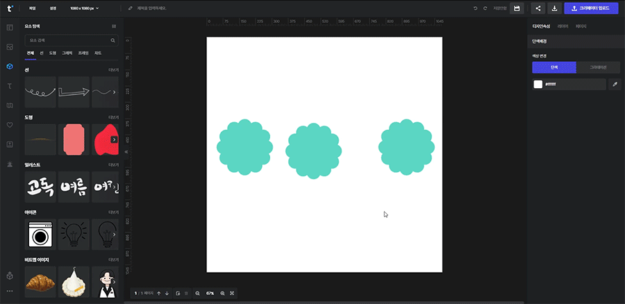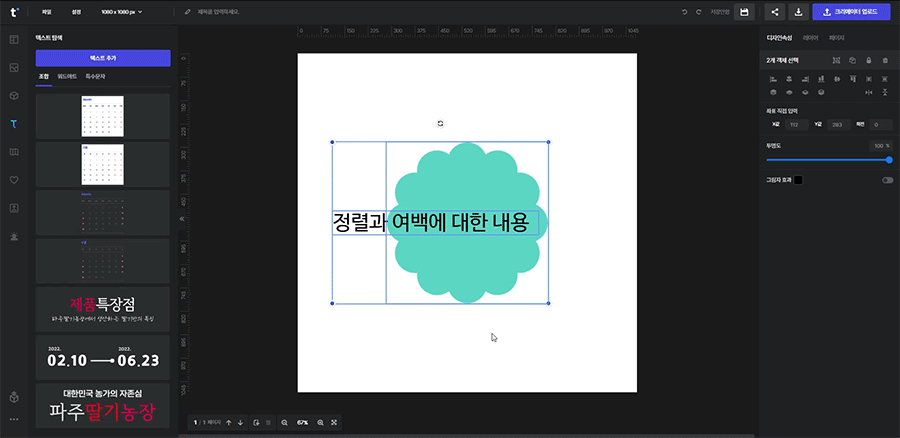예를 들어 일러스트 요소와 텍스트를 선택하고 왼쪽 정렬을 클릭하면 함께 선택된 영역의 왼쪽으로 정렬이 됩니다.