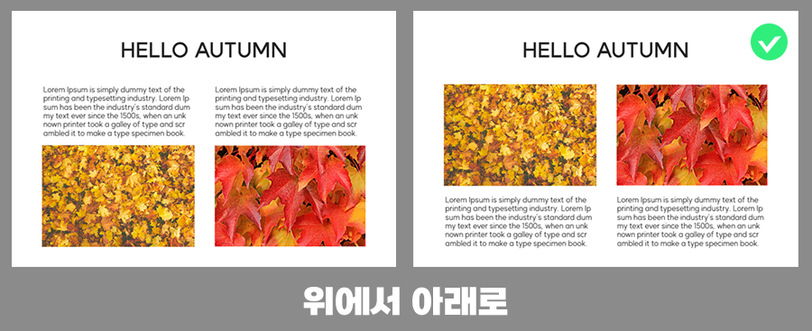 이렇게 배치할 시 집중도가 높아지게 되고 강력한 임팩트를 남길 수 있습니다.