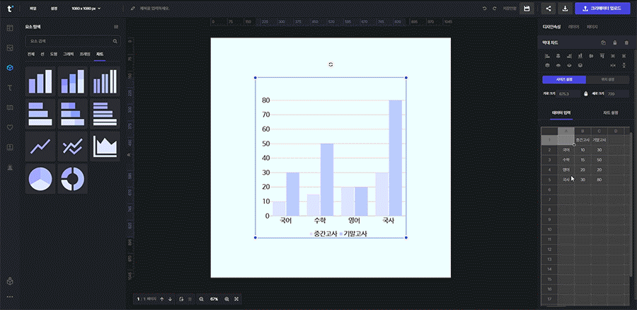 툴디에서 차트를 이용하여 템플릿을 완성해 보세요!