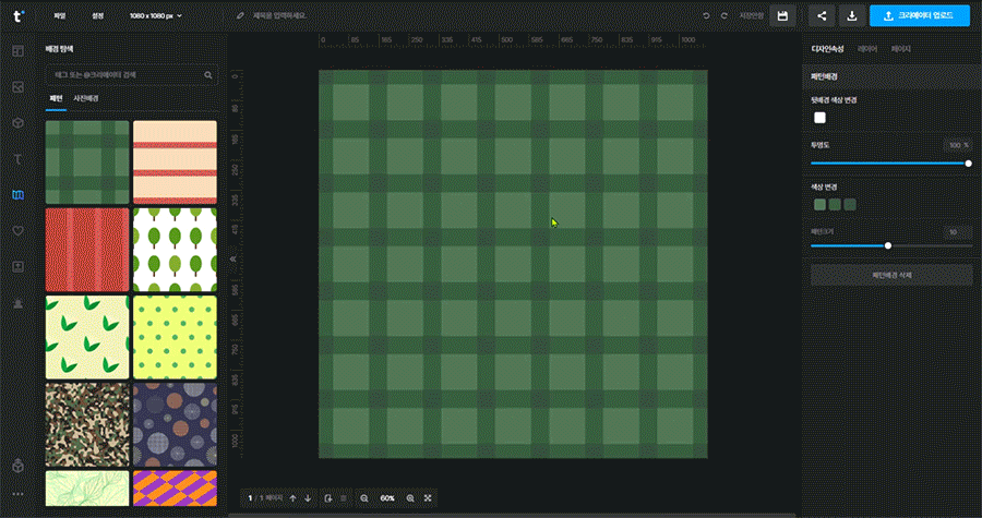 원하는 패턴을 선택하면 캔버스 배경에 패턴이 적용됩니다.