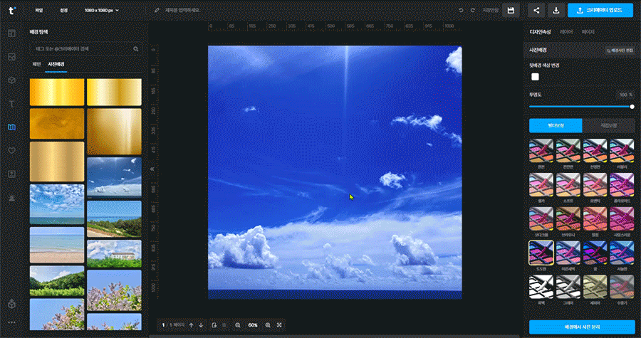 원하는 사진을 선택하면 해당 사진이 캔버스 배경에 적용됩니다.