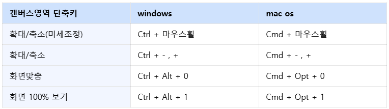 | 캔버스영역 단축키 | windows | mac os |