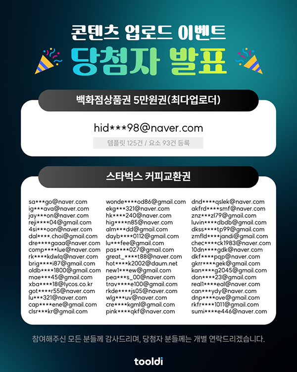 당첨되신 분들 진심으로 축하드리며, 앞으로 진행되는 이벤트에도 많은 관심과 참여 부탁드립니다!