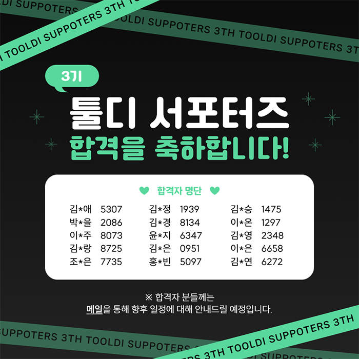 툴디 서포터즈 3기 선정 결과 발표!