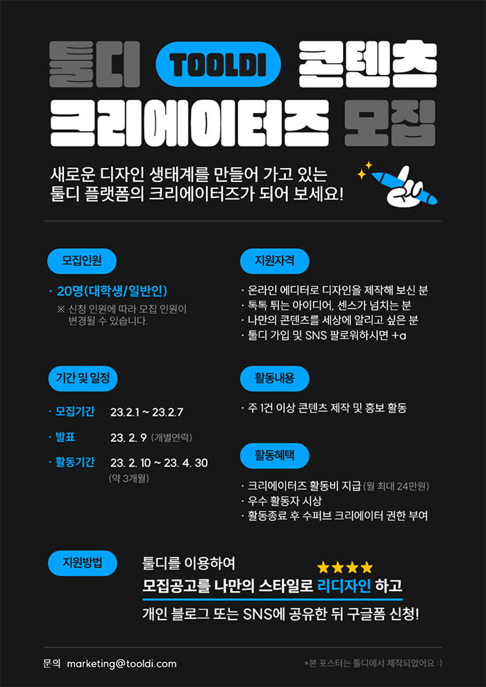 2023 툴디 콘텐츠 크리에이터즈 모집