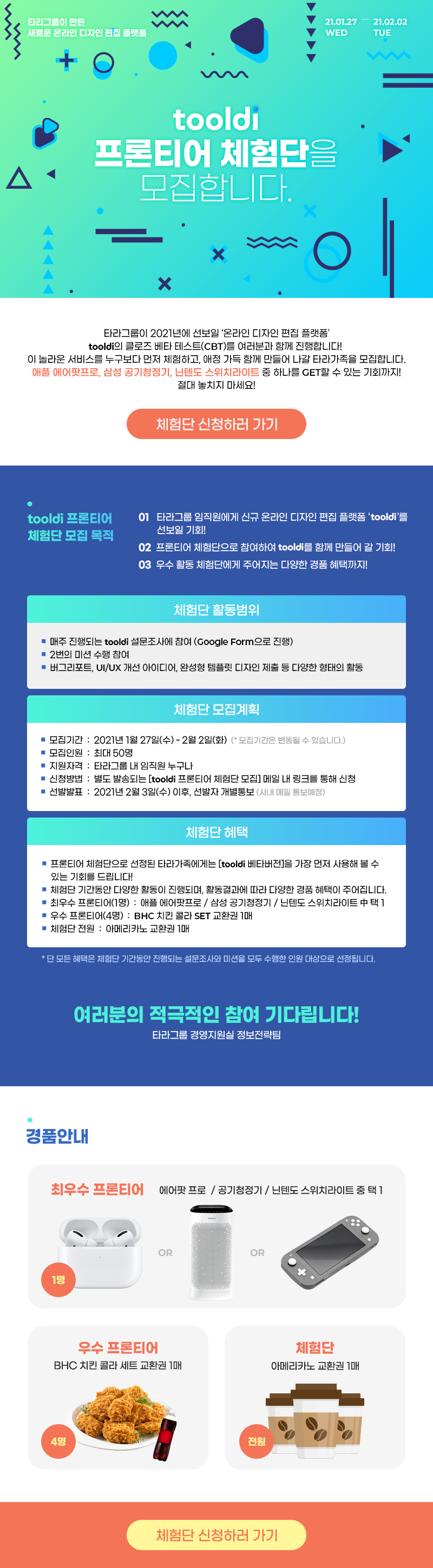 [모집] tooldi 프론티어체험단 모집 안내
